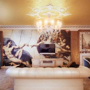Натяжные потолки с фотопечатью позволяют добавить в интерьер зала уникальные элементы – от нежных цветов и абстракций до звёздного неба и городских пейзажей.