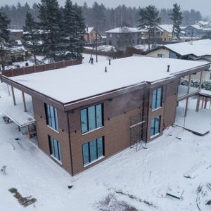 В производстве таких материалов происходит срезка самого плотного наружного древесного слоя. Из-за этого брус становится менее стойким к влаге, плохо противостоит грибкам и гниению. Если для возведения постройки используются такие материалы, то оптимальное время для возведения построек – конец осени или начало зимы. Установку оконных и дверных конструкций можно планировать уже на лето. Также летом можно отделывать фасад, не переживая что облицовочный материал растрескается.
